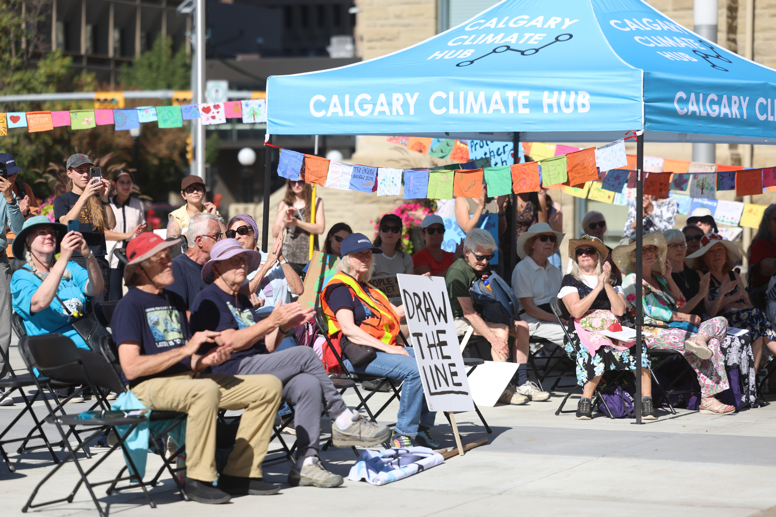 We had a Piikani elder offer an opening prayer to ground us. An EECA settler member shared a land acknowledgement, rooted in a commitment to reconciliation. The Calgary Climate Hub's Executive Director reviewed the 5 demands.